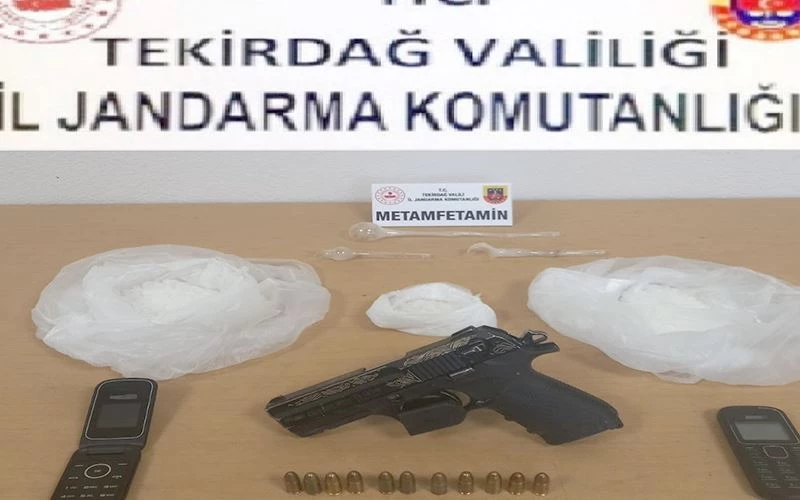 İstanbul’dan Tekirdağ’a uyuşturucu madde getirileceği bilgisi üzerine çalışma başlatan Jandarma İstihbarat ve KOM Şube Müdürlükleri ile Kumbağ Jandarma Karakol Komutanlığı ekipleri, Kumbağ Mahallesi’nde S.K. (25) ve O.Y. (27) isimli şüphelilerin üzerinde ve çantalarında arama yaptı. Yapılan aramalarda 515 gram metamfetamin, 1 adet ruhsatsız tabanca, 2 adet sim kartı bulunmayan cep telefonu ve 3 adet uyuşturucu içme aparatı ele geçirildi. Gözaltına alınan 2 şüpheli, jandarmadaki işlemlerinin ardından adliyeye sevk edildi. Mahkemeye çıkarılan S.K. tutuklanırken, O.Y. ise adli kontrol şartıyla serbest bırakıldı.