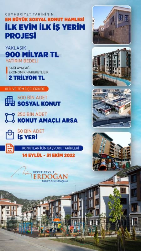 AK Parti Tekirdağ İl Başkanı Mestan Özcan, önceki gün Cumhurbaşkanı Recep Tayyip Erdoğan’ın açıkladığı konut projesinin detaylarını Verdi. Mestan Özcan, Tekirdağ’da yapılacak konutlarla ilgili detaylı bilgilerde verdiği açıklamasında “ Tarihi projenin adı: İlk Evim, İlk İş Yerim "Bu devasa sosyal konut projemizin ilk etabını oluşturan 250 bin sosyal konutu, 250 konut arsasını ve 10 bin iş yerini 2 yılda bitirerek hak sahiplerinin kullanımına sunmayı planlıyoruz.”dedi.