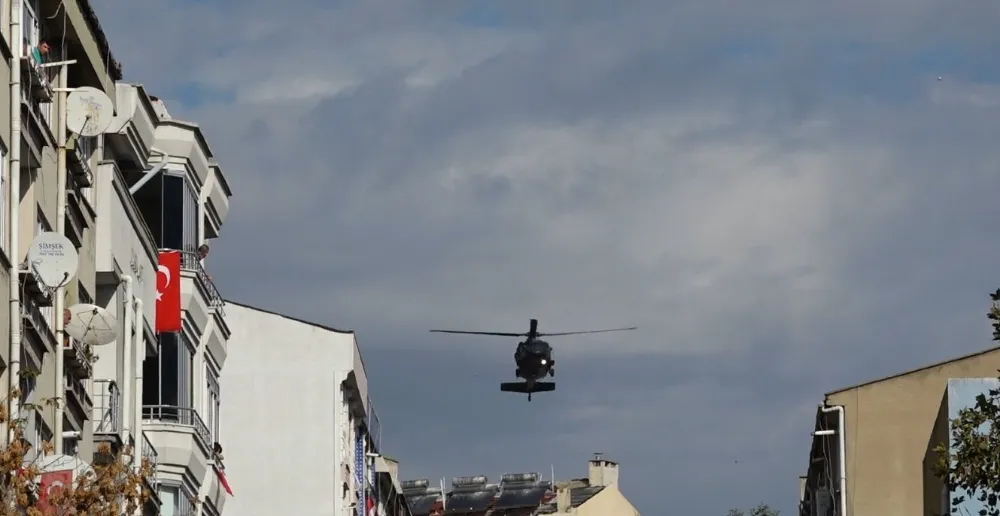 Konuşmaların ardından geçiş töreni yapıldı. Öğrencilerin geçişinin ardından askeri birlikler geçiş yaptı. Törende, jandarmaya ait helikopter alçak uçuş yaparak geçiş yaptı. Helikopterin geçişi esnasında vatandaşlar telefonları ile o anı ölümsüzleştirmek için bol bol fotoğraf çekti.