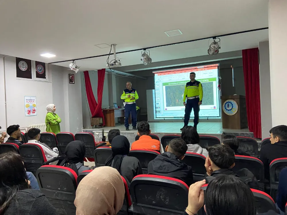 Çerkezköy Kızılpınar Çok Programlı Anadolu Lisesi’nde Jandarma ekipleri tarafından motosiklet eğitimi verildi. ‘Motosiklet Kampanyası ve Bilgilendirme Faaliyetleri’ çerçevesinde ‘Bir kural bir ömür’ kampanyası Çerkezköy Kızılpınar Çok Programlı Lisesi öğrencilerine yönelik güvenli motosiklet kullanımı eğitimi verildi. Jandarma ekipleri tarafından verilen eğitimlere öğrenci ve öğretmenler katıldı.