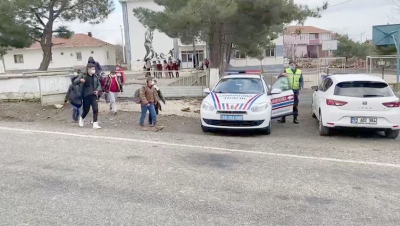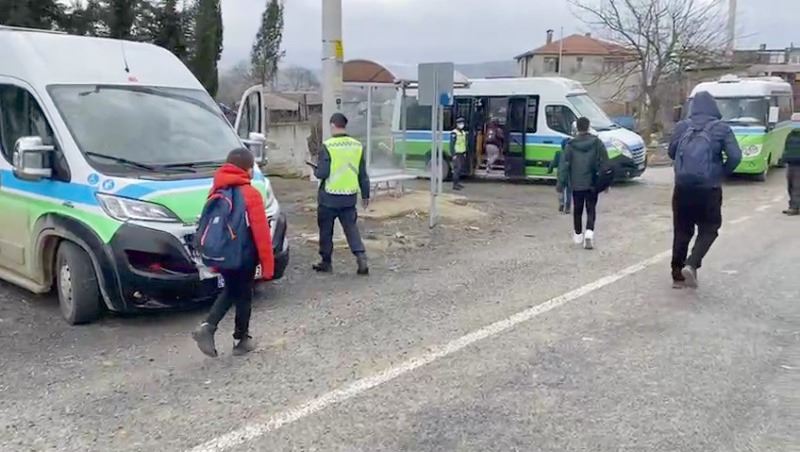 Jandarma ekipleri, ilçede taşımalı eğitim verilen mahallelerdeki okullardan öğrenci taşıyan servis minibüslerini durdurup evraklarına bakarak araçların uygun olup olmadığını kontrol etti.