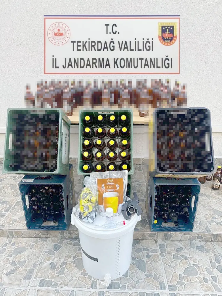 Hayrabolu ilçesi Karabürçek Mahallesi’nde S.D. isimli şahsın ikametinde yapılan aramada, 90 adet (50 cc lik’)el yapımı bira, 2 kilogram malt özü,1 adet kapak takma aparatı, 1 adet bira yapımında kullanılan mayalandırma kabı, 200 adet bira kapağı, 150 adet boş bira şişesi, ele geçirildi.