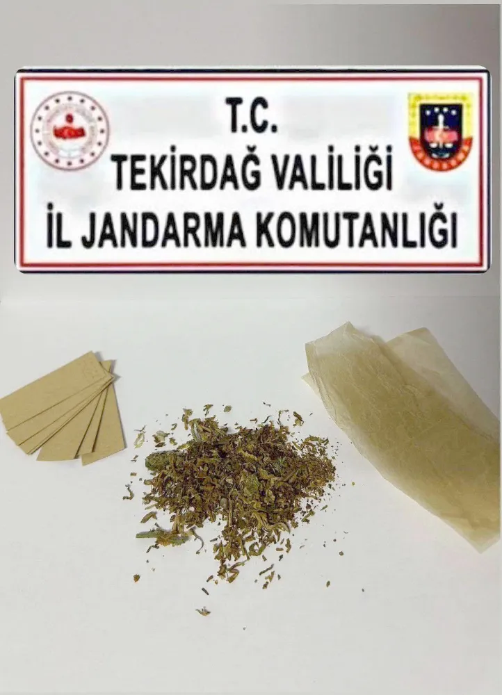 Tekirdağ İl Jandarma Komutanlığınca Şarköy ilçesi Mürefte Mahallesi’nde E.T. isimli şahsın yapılan kaba üst aramasında, 1 adet uyuşturucu madde öğütme aparatı, 1 adet sarma kağıdı ele geçirildi.