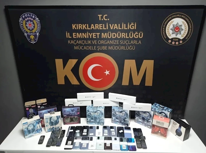 Babaeski ilçesinde yapılan operasyonda, gümrük kaçağı 18 adet akıllı cep telefonu, 12 adet tuşlu telefon, 5 adet akıllı saat, 10 adet faturasız oyuncu kulaklığı, 2 adet faturasız bluetooth mikrofon ele geçirildi.