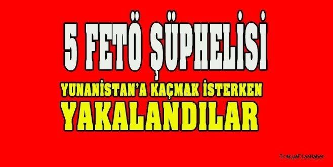 Edirne`de, yasa dışı yollarla Yunanistan`a kaçmaya çalışan 5 FETÖ şüphelisi yakalandı. FETÖ şüphelilerinin kaçışında organizatörlük yaptığı tespit edilen 2?si Afganistan uyruklu toplam 5 kişi tutuklandı.