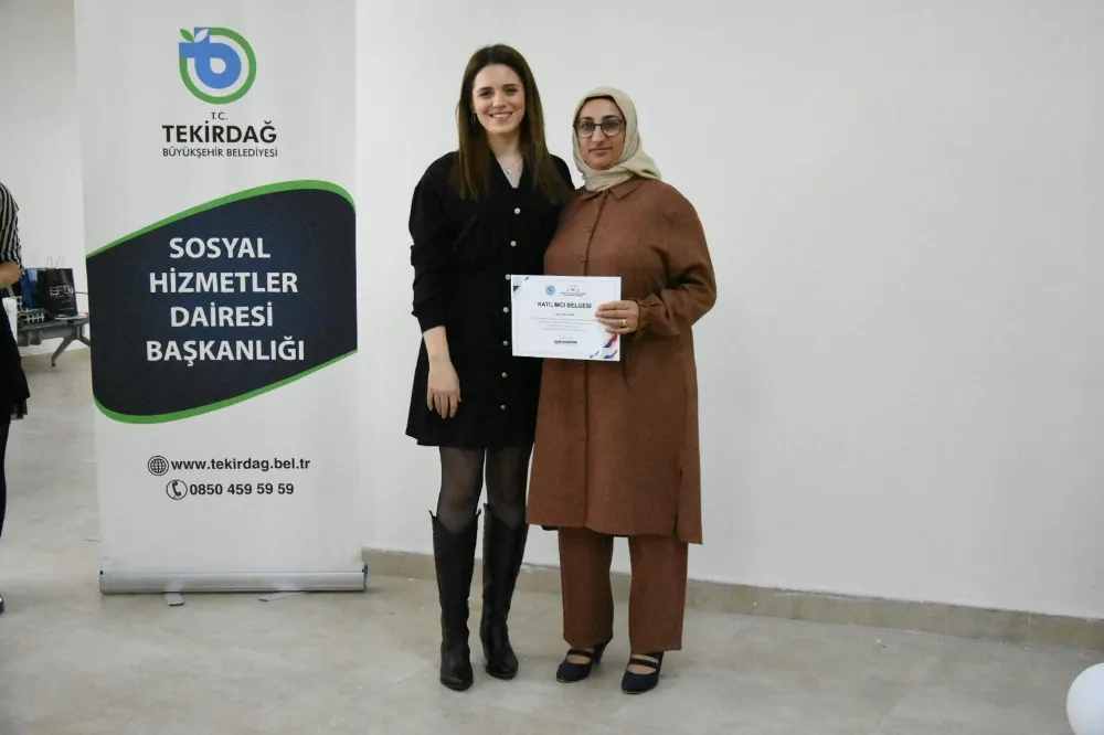 Altyapı ve üstyapı çalışmaları ile Tekirdağ’ın çehresini değiştiren ve dev yatırım ve projelerle kentin gelişimine büyük katkı sağlayan Tekirdağ Büyükşehir Belediyesi, sosyal belediyecilik alanında da örnek proje ve çalışmalara imza atmaya devam ediyor. Bu kapsamda Tekirdağ Büyükşehir Belediyesi'nin Çerkezköy ilçesinde bulunan Kadın Danışma Merkezi bünyesinde hayata geçirilen Kadın Çalışmaları Atölyesi ile Çocuk Etkinlikleri Grubuna katılan kişilere katılım belgeleri takdim edildi.