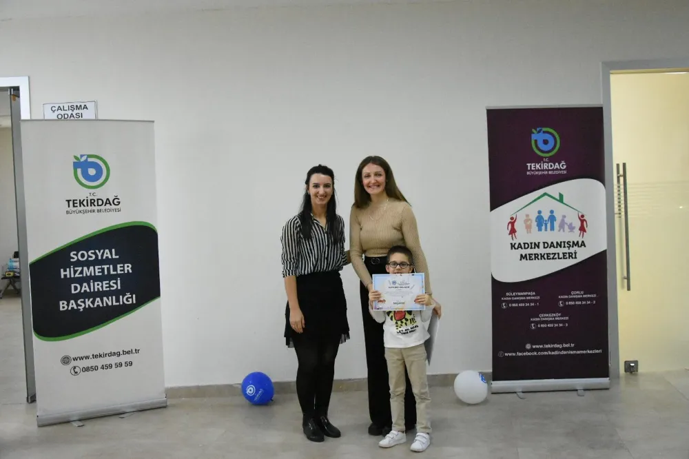 Çerkezköy Kadın Danışma Merkezi tarafından kadınları güçlendirmek ve çocukların gelişimine katkı sağlamak amacıyla hayata geçirilen ve toplamda 8 hafta süren Kadın Çalışmaları Atölyesi ile Çocuk Etkinlikleri Grubu çalışmalarını başarıyla tamamlayan katılımcılara katılım belgeleri verildi.