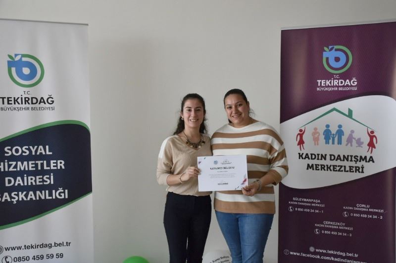 Tekirdağ Büyükşehir Belediyesi, sosyal belediyecilik anlayışı ile hareket ederek Türkiye’deki güncel sorunlara çözüm bulacak projeleri hayata geçirmeye devam ediyor. Bu kapsamda Çerkezköy Kadın Danışma Merkezi bünyesinde gerçekleştirilen Kadın Çalışmaları Atölyesi ve Çocuk Etkinlikleri Grubunda yer alan katılımcılara katılım belgeleri düzenlenen törenle takdim edildi.