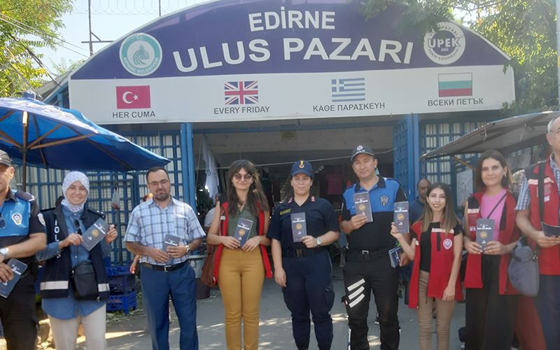 İçişleri Bakanlığı tarafından Kadına Yönelik Şiddetle Mücadele Etkinliği ve bu konudaki bilincin artırılması amacıyla ‘Kadına El Kal-Ka-Maz’ sloganıyla hazırlanan broşür, Edirne’de de erkeklere dağıtıldı.