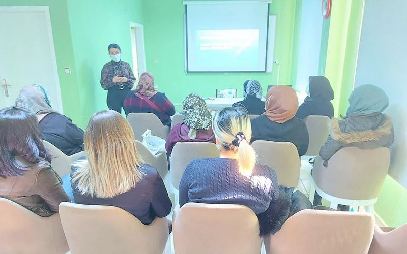 Malkara İlçe Sağlık Müdürlüğü’nde görevli Sosyal Çalışmacı Nesrin Karsak tarafından verilen seminerde; aile içi şiddet ile mücadelede rol oynayan faktörler, fiziksel şiddet, psikolojik şiddet, ekonomik şiddet, tek taraflı ısrarlı takip, kadına yönelik şiddetin türleri ve bu şiddetten korunma biçimleri, psikososyal destek, tıbbi, hukuki ve maddi destek ile şiddetin kadınlar ve çocuklar üzerindeki etkileri anlatıldı.