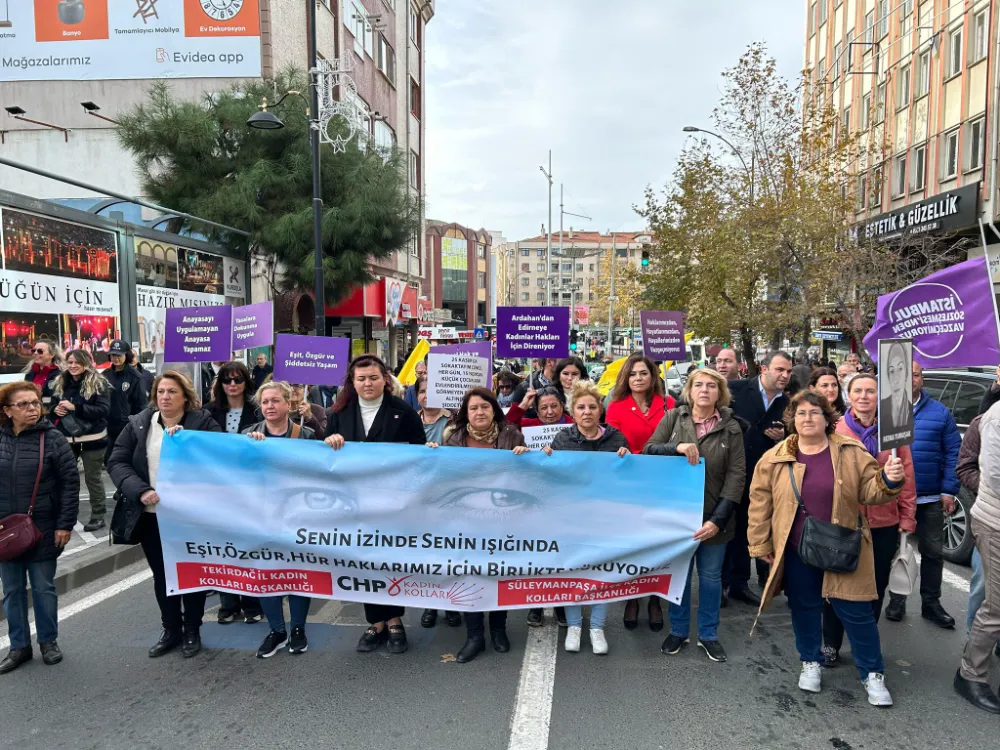 Tekirdağ Büyükşehir Belediye Başkan A. Adayı Candan Yüceer, 25 Kasım Kadına Yönelik Şiddetle Mücadele Günü nedeniyle, yürüyüş düzenleyen CHP’li kadınlara eşlik etti.