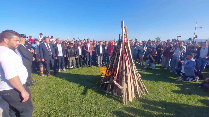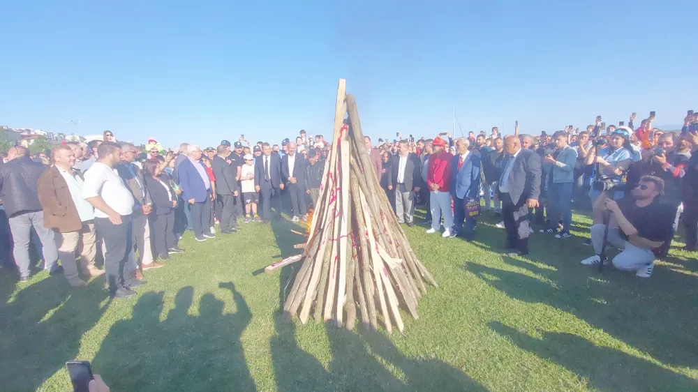 Yürüyüşün sona erdiği, sahilde toplanan odunlarla kurulu alanda, Tekirdağ İl Kültür Turizm Müdürü Ahmet Hacıoğlu, Süleymanpaşa Belediye Başkanı Volkan Nallar hıdrellez ateşini yaktı.