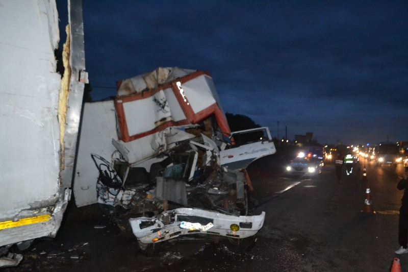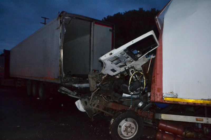 Tekirdağ’da kimyasal madde yüklü kamyon, park halindeki TIR'a arkadan çarptı. Kabini hurda yığına dönen kamyondan, sürücü yaralı halde çıktı.