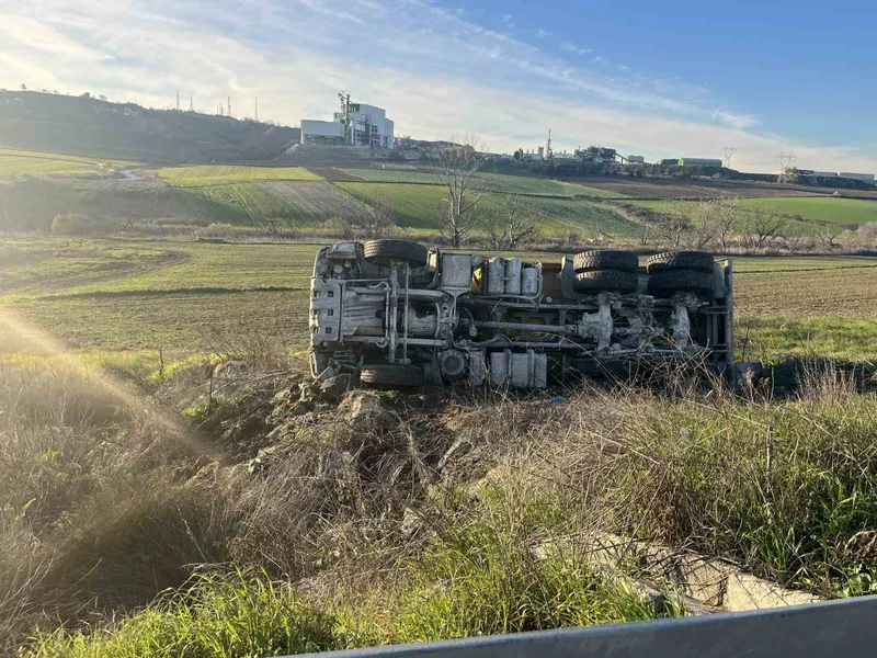 Tekirdağ Çorlu’da bariyerlere çarparak metrelerce sürüklenen kum yüklü hafriyat kamyonu tarlaya devrildi. Kamyon şoförü Mehmet Kopuz, feci kazayı burnu bile kanamadan atlatmasını emniyet kemeri takmasına borçlu olduğunu dile getirdi.