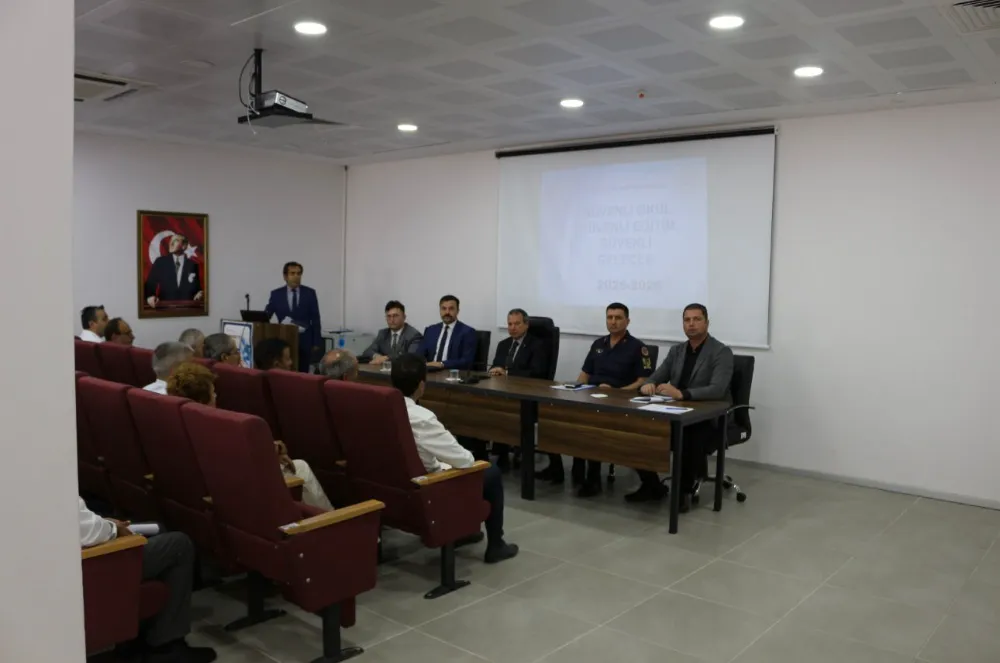 Yeni eğitim-öğretim yılı öncesinde okul güvenliğine yönelik alınacak önlemler, “Güvenli Okul, Güvenli Eğitim, Güvenli Gelecek” temasıyla düzenlenen toplantıda ele alındı. Toplantıya Kaymakam Mustafa Gürdal başkanlık etti.