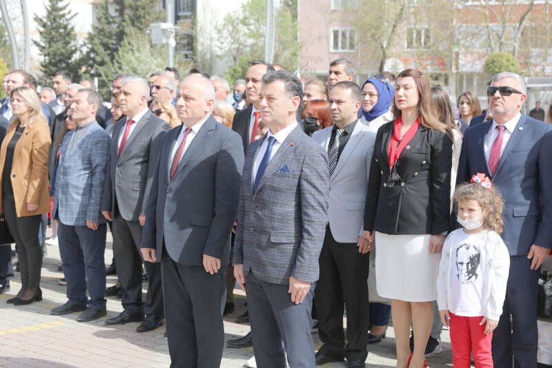 Türkiye Büyük Millet Meclisi’nin açılışının 102’nci yıl dönümü ve 23 Nisan Ulusal Egemenlik ve Çocuk Bayramı kutlama programı Atatürk Anıtı önünde düzenlenen çelenk sunma töreni ile başladı. İlçe Milli Eğitim Müdürlüğünün çelenginin sunulmasının ardından saygı duruşunda bulunuldu ve İstiklal Marşımız okundu.