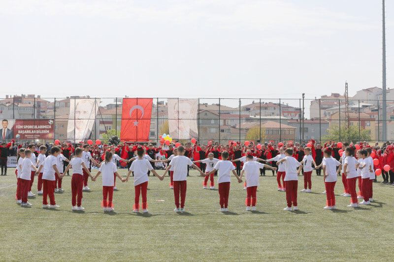 Ardından program saygı duruşunda bulunulması ve İstiklal Marşımızın stadı dolduran binlerce kişi tarafından coşkuyla okunmasıyla başladı. Günün anlam ve önemine ilişkin konuşmayı İlçe Milli Eğitim Müdürü İrfan Danışmaz yaptı. Danışmaz konuşmasında 23 Nisan’ın önemine değinerek tüm çocukların 23 Nisan Ulusal Egemenlik ve Çocuk Bayramı’nı tebrik etti.