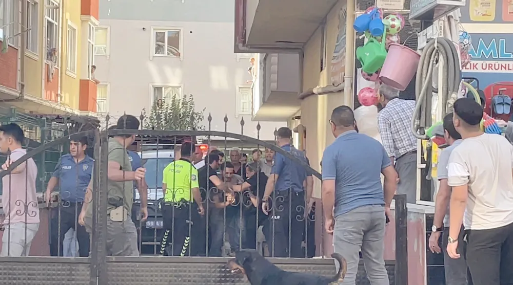 Polis ekipleri güvenlik amacıyla apartman önünde önlemlerini alırken, olayla ilgili soruşturma başlatıldı.