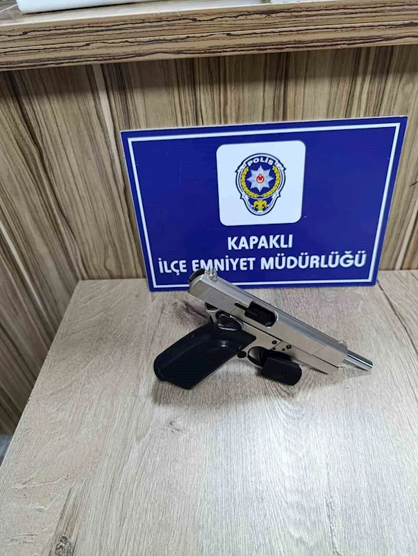 Edinilen bilgiye göre, G.A. isimli şahsın, Kapaklı İlçe Emniyet Müdürlüğü ekiplerine Ş.A. isimli eşinin kendisini silahla tehdit ettiğini beyan etmesi üzerine Ş.A.’yı yakalama çalışmaları başlatıldı. Yapılan saha çalışmaları sonucunda Ş.A. isimli şahıs üzerinde 1 adet kurusıkıdan bozma tabanca ve boş şarjör ile yakalandı.