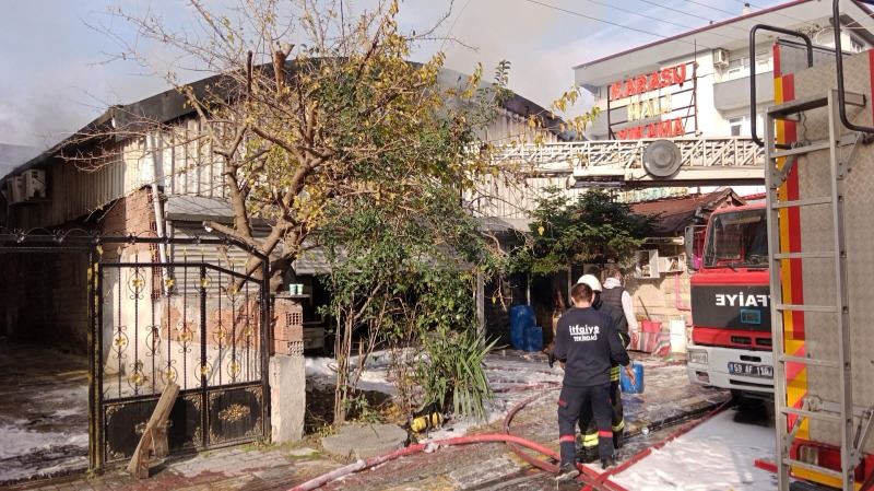 Tekirdağ’ın Kapaklı ilçesindeki halı yıkama tesisinde çıkan yangına müdahale çalışması başlatıldı. İtfaiye ekipleri, kapıdan giremedikleri tesise çatıdan girerek yangına müdahale etmeye çalışıyor.