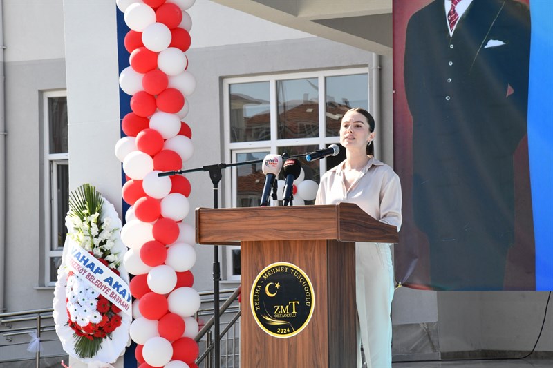 Saygı duruşunda bulunulması ve İstiklal Marşımızın okunmasıyla başlayan açılış programı, Hayırsever Tijen Tusçuoğlu Alkan’ın konuşmasıyla devam etti. Ardından İl Milli Eğitim Müdürü Abdulaziz Yeniyol bir konuşma yaparak okul hakkında bilgiler verdi.