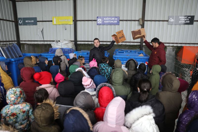 Öğrenciler, Atık Getirme Merkezi’ndeki her kontrol noktasını tek tek gezerek bilgilendirildi. Ziyarette öğrencilere kompost makinesinde organik toprağa dönüşen kompost ve tohum kalem hediye edildi.