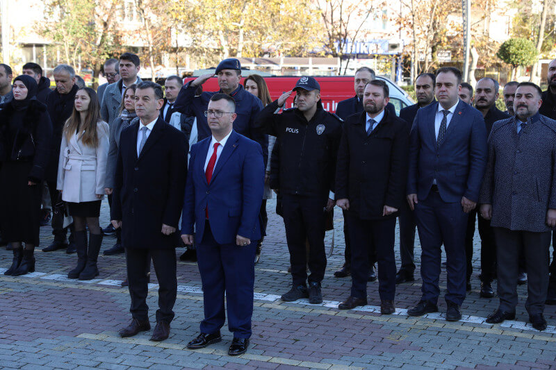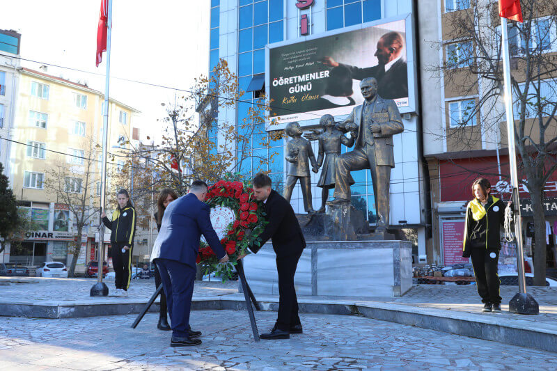 24 Kasım Öğretmenler Günü kutlama programı, saat 10.00’da Atatürk Anıtı’nda düzenlenen çelenk sunma töreni ile başladı. İlçe Mili Eğitim Müdürü Halil Vardı tarafından müdürlük çelenginin sunulmasının ardından saygı duruşunda bulunuldu ve İstiklal Marşımız okundu.