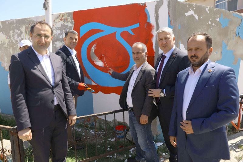 Uzunhacı Mahallesi’nde senelerdir gelenek hale getirilen süper lig şampiyonunun renklerinin boyandığı duvar bu yıl Trabzonspor'un renkleri ile boyandı.
