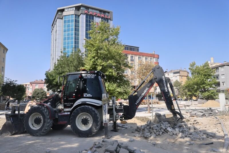 Kapaklı Belediyesi tarafından kent estetiğini artırmak ve vatandaşlara daha konforlu bir yaşam alanı sunmak amacıyla Belediye Meydanı ve Merkez Camii çevresinde başlatılan yenileme çalışması tüm hızıyla sürüyor.
