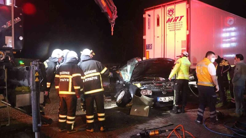 Edirne’de tıra arkadan çarpan otomobilde bulunan 2 kişi feci şekilde hayatını kaybetti.