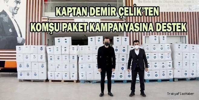 Sektöründe ülkenin önde gelen firmalarından biri olan Kaptan Demir Çelik Şirketler Grubu, Çerkezköy Belediyesi tarafından başlatılan ?Komşu Paket? kampanyasına 200 koli erzak paketi ile destek oldu.