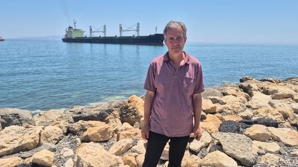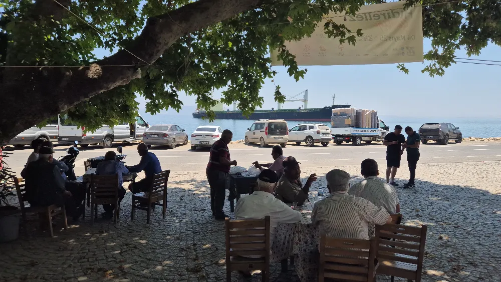 Köy kahvesinde oturan vatandaşlardan Raşit Olur, "Sabah gemi köyümüzde karaya oturdu. Biz de buradan gemiyi gözetliyoruz" ifadelerini kullandı.