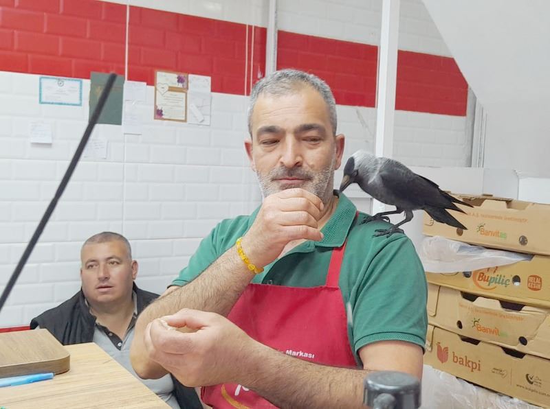Atatürk Caddesi üzerinde hizmet veren Bağış Kasabı’nın işletmecilerinden Metin Bağış, 8 yıldır karga besliyor. Yanlış anlamayın karga kafeste ya da işerinde değil, doğada uçup gidiyor, gezip tozduktan sonra her gün karnı acıkınca Metin Bağış’ın yanına geliyor. Yaklaşık 8 yıldan buyana kargayı beslediğini belirten Metin Bağış, “8 yıldır Arap burada. Her gün gelip karnını doyurup gidiyor. İşletmemizdeki kardeşlerim dahil herkesle arası iyidir. Bizim aileden biri gibi. Ürkmez, kaçmaz, korkmaz. Ama özellikle de bana alışkındır.”dedi.