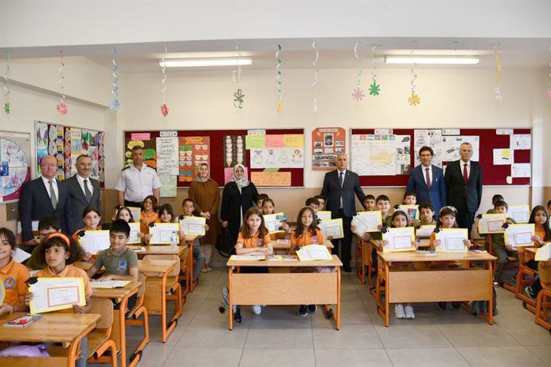 Öğrencilere karnelerini verirken onlarla sohbet eden Vali Yıldırım, tatilde dinlenmelerini, aileleri ile zaman geçirmelerini ve kitap okumalarını tavsiye etti.