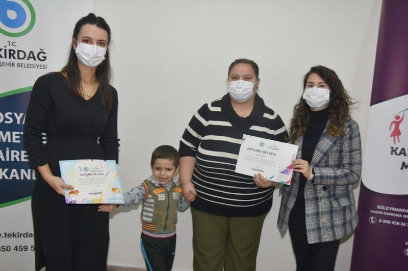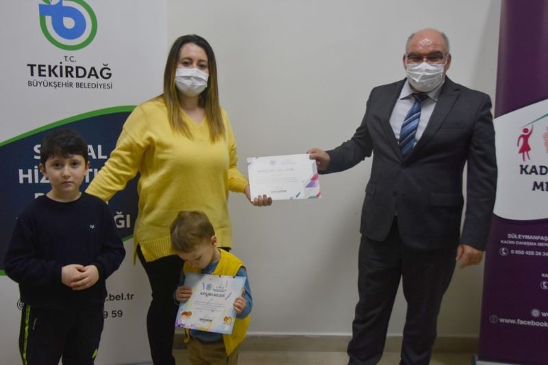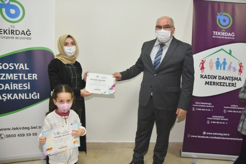 Sosyal belediyecilik anlayışı çerçevesinde çalışmalarını sürdüren Tekirdağ Büyükşehir Belediyesi’nin Çerkezköy ilçesinde bulunan Kadın Danışma Merkezi bünyesinde hayata geçirdiği Çocuk Etkinlikleri Grubu ve Kadın Çalışmaları Atölyeleri katılımcılarına sertifikaları takdim edildi.