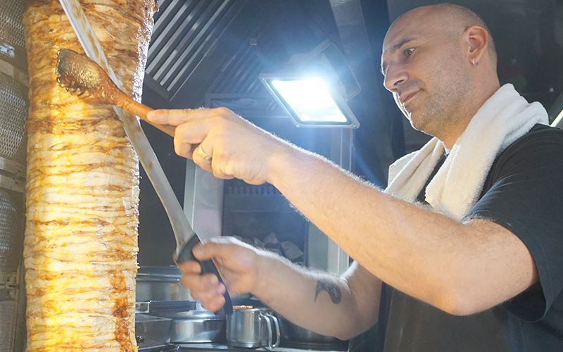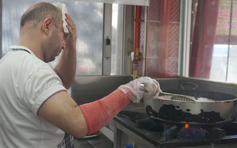 Senelerdir lokanta işlettiklerini söyleyen 42 yaşındaki Döner Ustası Gönül Ahçı, "Dükkanın içinde hem ciğer hem köfte hem döner var. Bu sıcaklarda katlanması gerçekten çok zor oluyor ama Allah kolaylık veriyor. Bir şekilde kendi çözümümüzü buluyoruz. Bu şekilde devam ediyoruz. Dışarısı 40 derece ise dönerin başı 60 derece rahat var. Bütün gün ter su içinde çalışıyoruz. Şu içerek ve küçük molalar vererek çalışıyoruz. Katlanması zor ama mecbur çalışıyoruz" ifadelerine yer verdi.