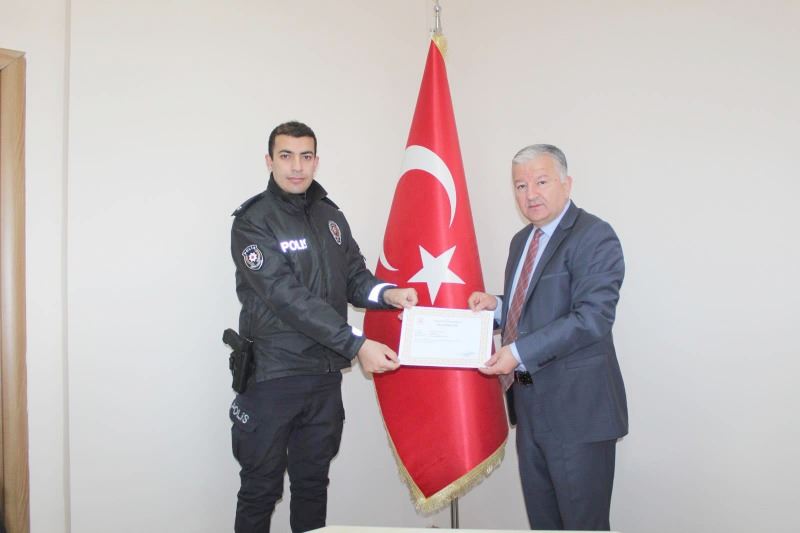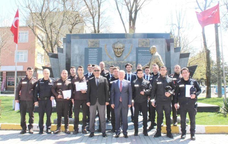 10 Nisan Polis Haftası kutlamalarının ardından Çerkezköy Kaymakamı Murat Duru, ilçe emniyet müdürlüğünde görevli 20 polis ve mahalle bekçisini ‘başarı belgesi’ ile ödüllendirdi. İlçe Emniyet Müdürü Harun Özcan ile birlikte emniyet görevlilerine ‘Başarı Belgeleri’ni takdim eden Kaymakam Murat Duru, “Polis haftası münasebetiyle ilçemizin asayişini, huzurunu, can ve mal güvenliğini sağlamada ve her türlü emniyet hizmetlerinde üstün başarı gösteren emniyet müdürümüz Harun Özcan’ı ve 20 polis ve mahalle bekçisi personelimizi