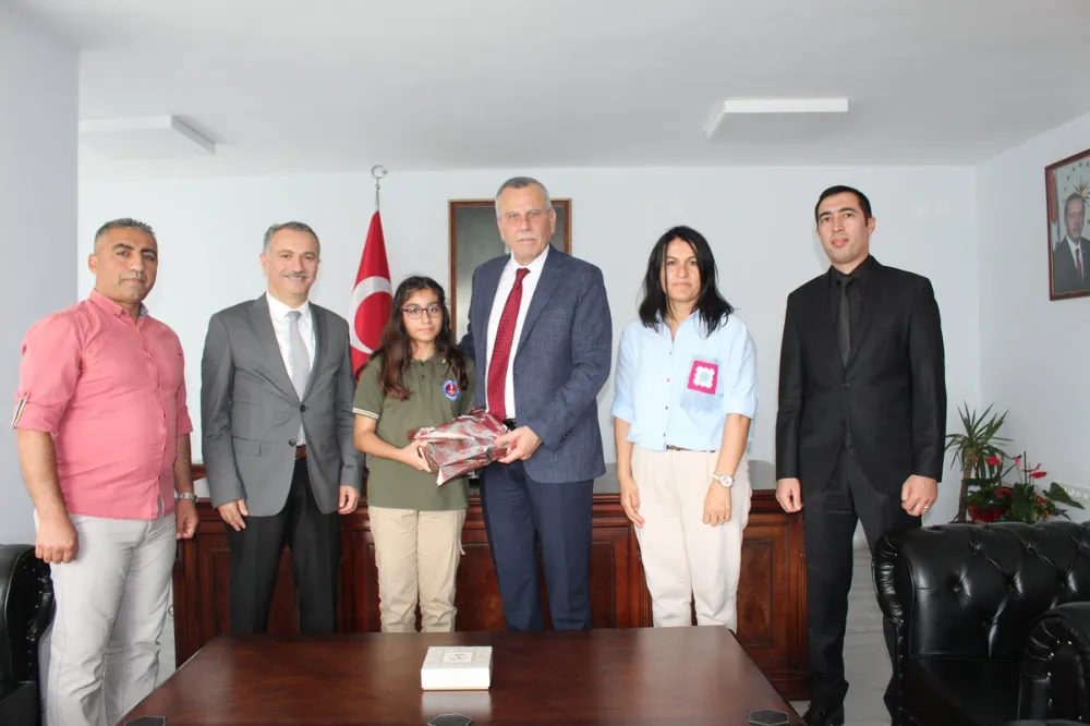 Çerkezköy Kaymakamı Nazmi Günlü, Türkiye’de yapılan Parasız Yatılılık ve Bursluluk Sınavı’nda tüm soruları yanıtlayan öğrenci Ela Çatalkaya’yı makamında kabul etti. Kaymakam Günlü, öğrenciyi tebrik ederken bir de hediye verdi.