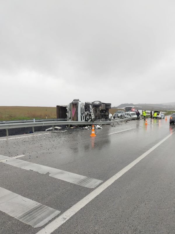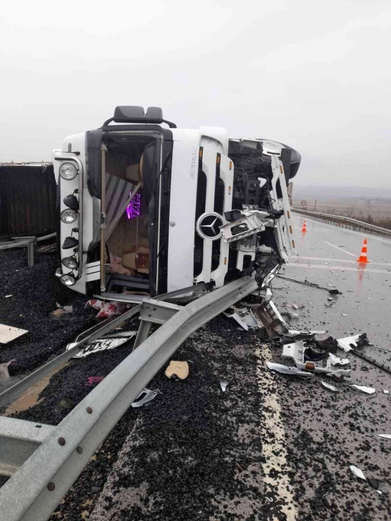 Kaza, Edirne-Uzunköprü kara yolunda meydana geldi. Edirne istikametinden Uzunköprü’ye seyir halindeki Abdi Yetkin idaresindeki 22 UN 578 plakalı kömür yüklü tır, keskin virajda havanın yağışlı olması sebebiyle sürücünün direksiyon hakimiyetini kaybetmesi ve dorsenin bariyerlere çarpası sonucu yan yatarak, yaklaşık 100 metre sürüklenerek, bariyerlere çarparak durabildi. Tır sürücü ise kazadan burnu bile kanamadan kurtuldu.