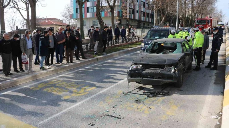 Edirne’de 2 kişinin yaralandığı kazayı vatandaşlar film gibi izledi