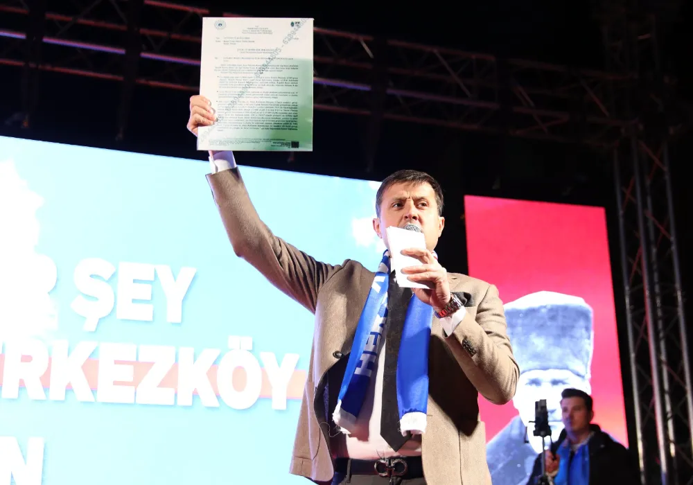 Fevzipaşa Mahallesi’nde açık hava toplantısı düzenleyen Çerkezköy Belediye Başkanı ve CHP Belediye Başkan Adayı Vahap Akay, soğuk havaya rağmen alanı dolduran coşkulu kalabalığa hitap etti. Fevzipaşa Mahallesi’nin iki temel sorunun bulunduğunu ve bunların küçük sanayi sitesi ile içme suyu hatları olduğunu belirten Belediye Başkanı Vahap Akay, ”Bakanlık üç buçuk yıl keyfi davrandı. Yeni dönemde gerekirse bu kamu yararı kararını aldırmak için bakanlığın kapısında yatacağız. Küçük sanayi sitesini her şeye rağmen buradan taşıyacağız” dedi.