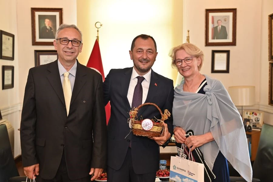 Daha sonra 57. Uluslararası Tekirdağ Kiraz Festivali için Süleymanpaşa Belediyesinin misafiri olarak gelen yabancı misafirler, Belediye Başkanı Cüneyt Yüksel tarafından Tarihi Belediye Binasında ağırlandı. İlk olarak Yunanistan’ın Kavala Belediye Başkan Yardımcısı Apostolos Moumtsakis ve eşi Flora Charalampidou, Atık Toplama Daire Başkanı Charalampos Panagiotdis ile birlikte Başkan Yüksel’in misafiri oldu. Ardından Romanya’nın Tekirgöl Belediyesi’nden Meclis Üyeleri Doina Babanica ve Niculae Berveaca ile Sparta Techirghiol Spor Kulübü Başkanı Logafatu Remus’u ağırlayan Yüksel, ziyaretlerinden dolayı duyduğu memnuniyeti misafirleri ile paylaştı. Macaristan’ın Keşkemet Belediyesi’nden Belediye Temsilcisi, Spor İşleri Meclis Üyesi ve Heyet Başkanı István Jánosi, Çevre, Kent Geliştirme ve Tarım Yönetim Kurulu Başkanı Zoltán Lejer, Sosyal ve Eğitim İşleri Komisyonu Başkanı András Pászti ile Fahri Hemşehrimiz Atilla Kovacs ve eşi Erika Szabo da Başkan Yüksel’i makamında ziyaret ettiler. Son olarak Makedonya’dan gelen Yeni Hayat Kültür ve Sanat Derneği Halk Oyunları ekibini kabul eden Yüksel, tüm misafirlere Süleymanpaşa’yı simgeleyen hatıra eşyaları hediye etti ve heyetlerin hediyelerini kabul etti.