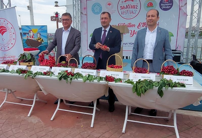 Programda konuşan Süleymanpaşa Belediye Başkanı Cüneyt Yüksel, “56’ncısını düzenlediğimiz ‘Kiraz Festivali’mizde, ismi bildiğiniz gibi; ismi üzerinde kiraz festivali. İşte o kirazın; bu şehirde yetişen her biri birbirinden kıymetli kirazın çeşitlerini, büyüklüklerini, tatlarını hep beraber görüyoruz. Sahilimizde bir çok noktada kiraz satışımız da mevcut. Ama bizim şöyle bir dezavantajımız oldu bu yıl için. Biliyorsunuz önümüzdeki hafta Allah nasip ederse çocuklarımız üniversite sınavına girecekler. Üniversite sınavı olması hasebiyle de biz Kaymakam Bey ile bu konuda istişare ettiğimizde festivalin bir hafta geri çekilmesinin daha doğru olacağını, çok yoğun olacağını bildiğimizden dolayı çocuklarımızın festival atmosferinden olumsuz etkilenmemeleri için bir hafta geri çektik. Aslında şimdi; yani Pazartesi gününden itibaren çok daha güzel olmuş kirazları herkes tadabilecekler. İnşallah önümüzdeki yıl ki takvime bağlı olmak üzere, biliyorsunuz hava koşullarına da bağlı olarak kirazlarımızın olgunlaşma zamanı değişiyor. Az önce Ziraat Odası Başkanlığımızın söylediği gibi bu hafta için daha iyi kirazlarımız olacak demişti. Ama dediğimiz gibi bugüne nasipmiş. İnşallah biz kirazımızı daha iyi tanıtabilmek, üreticimizin neleri başarabildiğini gösterebilmek için bu organizasyonları yapıyoruz. Emeği geçen bütün üreticilerimize teşekkür ediyoruz. Şuradan şunun bilgisini de vermek istiyorum. Allah nasip ederse önümüzdeki yıl Süleymanpaşa Belediyesi de bu yarışlara, kiraz üreticisinin katıldığı bu yarışlara dâhil olacak. Çok güzel bir bahçemiz var, hazırlıklar gayet güzel gidiyor. Kirazlarımızı da gördük aslında ama, hazır olmadığı için seneye inşallah biz de yarışmaya katılacağız. Jürinin karşısına biz de kirazlarımızla çıkacağız. Mümkün olduğu kadarıyla birbirinden farklı meyvelerin yetiştiği bu şehrin, yetiştiren güzel insanlarını herkese tanıtmak istiyoruz. Amacımız bu. Hedefimiz 2 buçuk milyon insanımızı, vatandaşı burada ağırlamak. Çok kalabalık, çok güzel bir festival süreci var. İnşallah, çok daha iyileri hep birlikte yapacağız” dedi.
