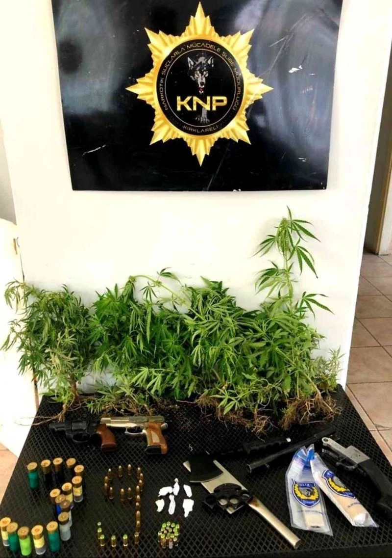 Alınan bilgiye göre, Babaeski ilçesinde İl Emniyet Müdürlüğü Narkotik Suçlarla Mücadele Şubesi ekipleri, Cumhuriyet Başsavcılığının koordinesinde uyuşturucu operasyonu düzenledi. Operasyon çerçevesinde belirlenen ev ve iş yerlerine baskın yapıldı. Operasyonda çeşitli miktarlarda uyuşturucu, 28 kök kenevir, muşta, satır, balta, 2 kurusıkı tabanca ile tüfek ele geçirildi.
