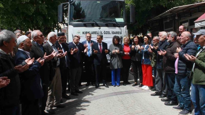 Törende konuşan Vali Birol Ekici deprem bölgesine en çok yardım yapan illerden birinin Kırklareli olduğunu belirterek “Kırklareli olarak deprem bölgesine en çok yardım gönderen bir İliz. Toplanan yardımları gıda paketine çevirerek göndermeye devam ediyoruz. Tüm halkımıza çok teşekkür ediyorum. Bu camiden sürekli yardım yapan halkımız adına bu kamyonu da buradan gönderiyoruz. Sabah bir tane Lüleburgaz’dan gönderdik ve bu gün Adana’dan satın aldığımız suyu da yine Hatay’a teslim edeceğiz 1 tır su teslim ediyoruz. Bu gün 2 kamyon, 1 tır yardım malzemesi teslim etmiş oluyoruz” dedi.