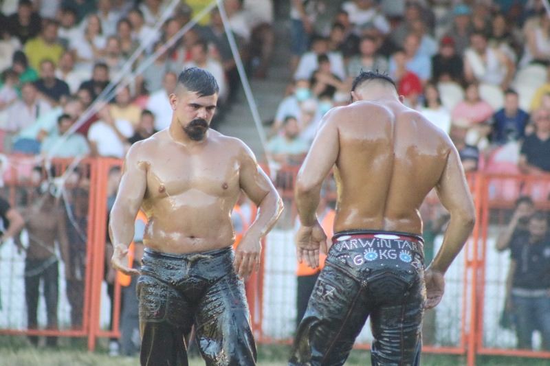 Bugün çeyrek finalde ardından da yarı finalde rakiplerini yenen başpehlivan kategorisinde güreşen Mustafa Taş ve Cengizhan Şimşek başpehlivanlık final müsabakasında güreşti.