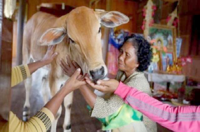 Kamboçya'da yaşayan Khim Hang isimli kadın, ölen kocasının bir ineğin bedeninde yeniden dünyaya geldiğini iddia ederek inekle dünyaevine girdi. İnek ve kadın şu anda aynı evde yaşıyor. Hatta inek, kadının ölen kocası Tol Khut'un yastığında uyuyor.