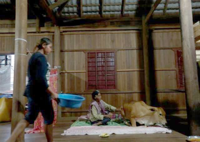 Kadın, ineğe ahır yerine kendi tek katlı evinde bakıyor. Özel olarak banyosu yaptırılan inek, aynı zamanda kadının geçtiğimiz yıl hayatını kaybeden kocası Tol Khut'un yastığında uyuyor.