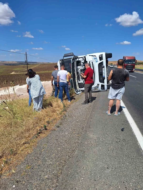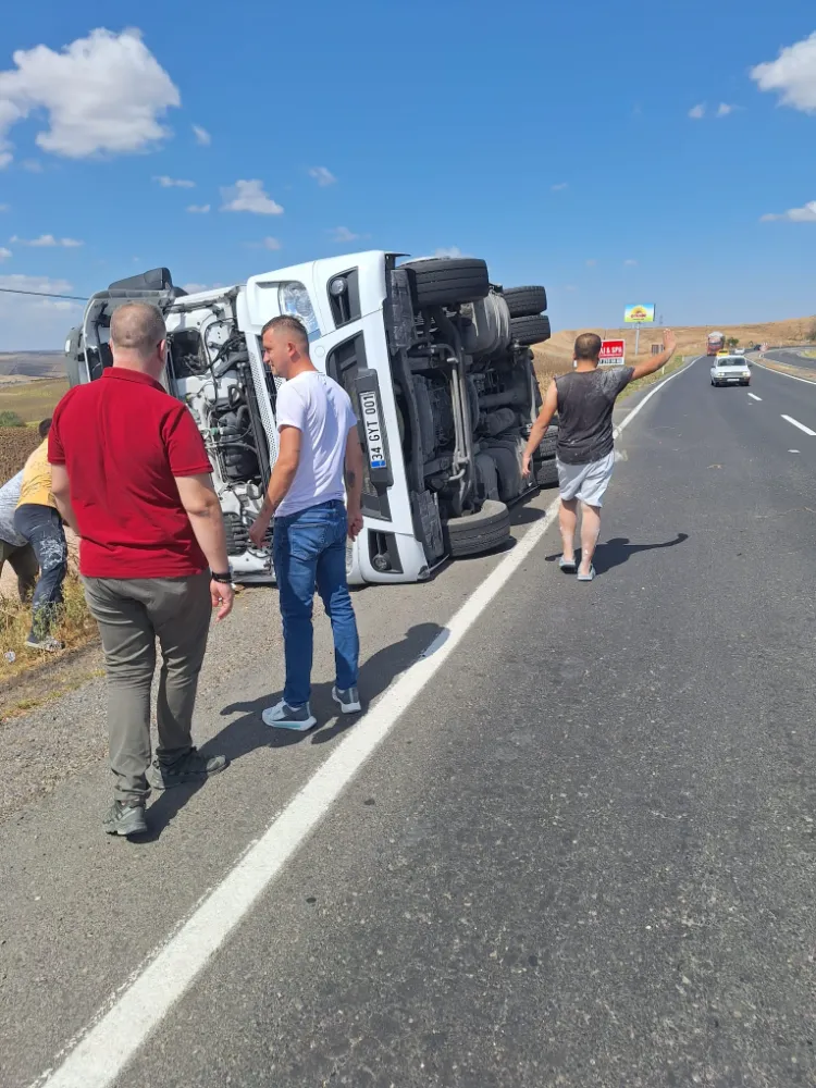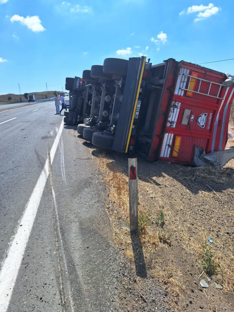 Tekirdağ’ın Muratlı ilçesinde kontrolden çıkarak yol kenarına devrilen tırın sürücüsü hafif şekilde yaralandı.
