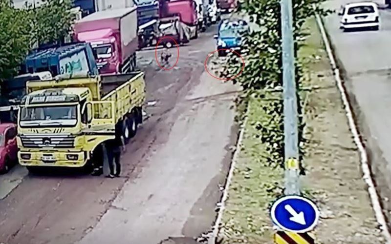 Güvenlik kamerasına yansıyan olayda, peşinden gelen köpekten kaçan çocuğa arabanın çarptığı görülüyor.
